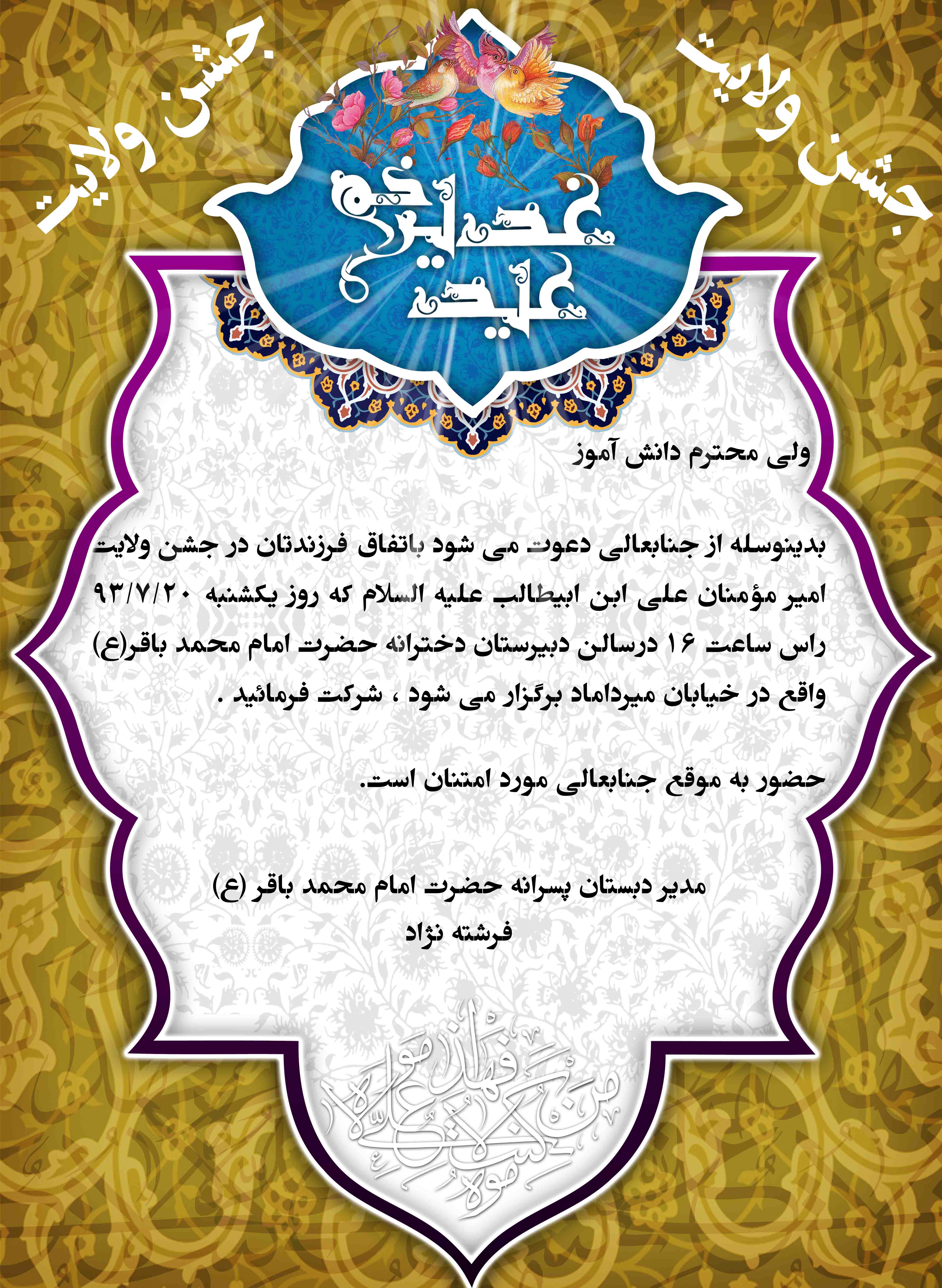 دعوتنامه جشن ولایت